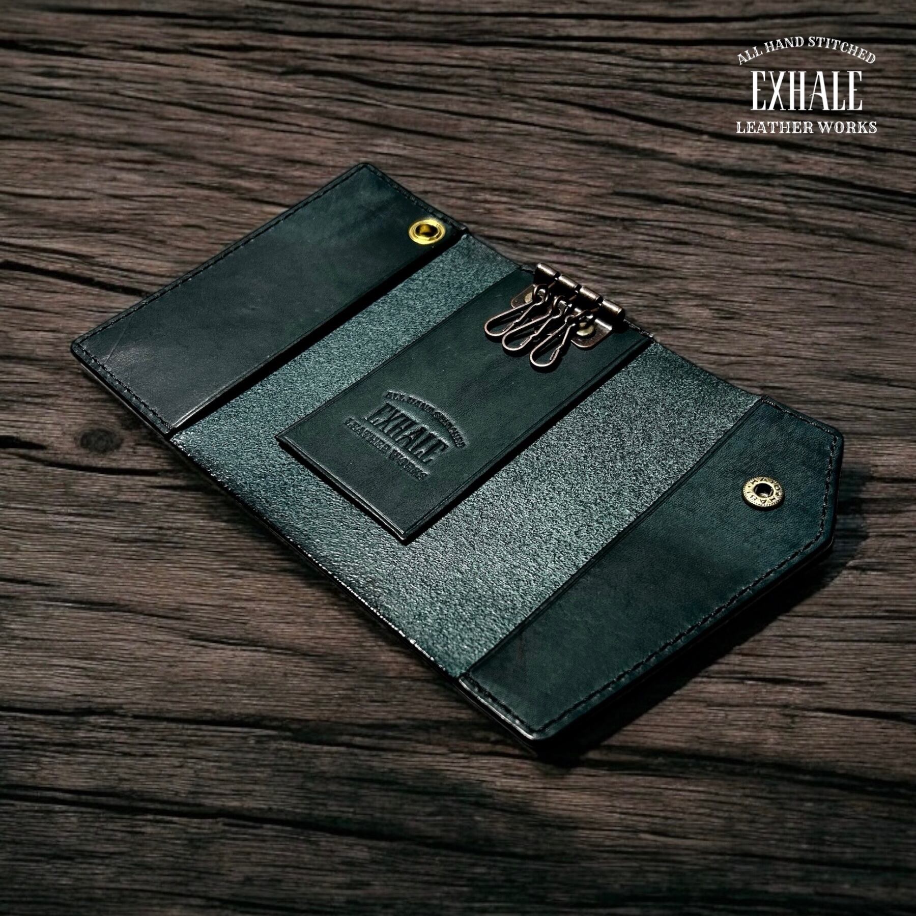 無骨でありながらクラシックな質感を感じる深緑色の革を使用しており、唯一無二のエイジングをお楽しみいただけます。